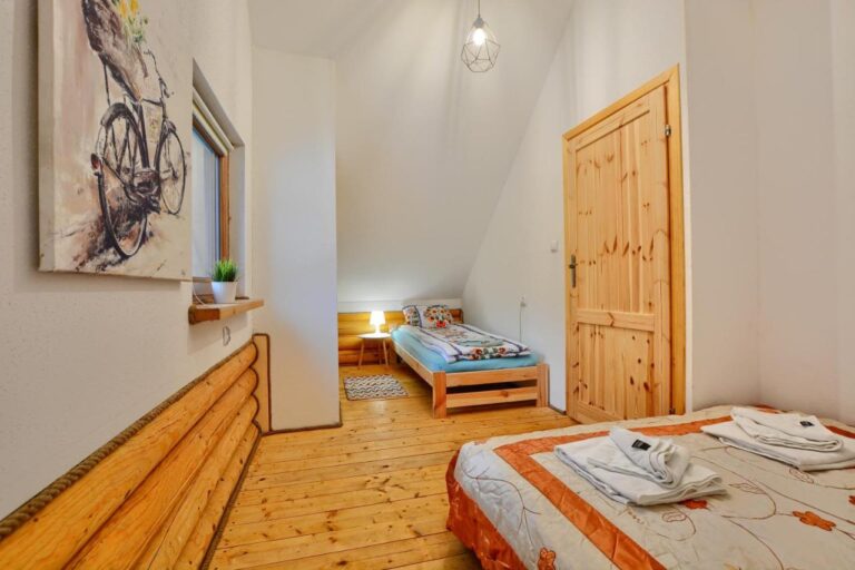 Posiada trzy odrębne sypialnie, salon z kuchnią oraz łazienkę i pomieści 9 (max.11 osób – po rozłożeniu sofy w salonie).