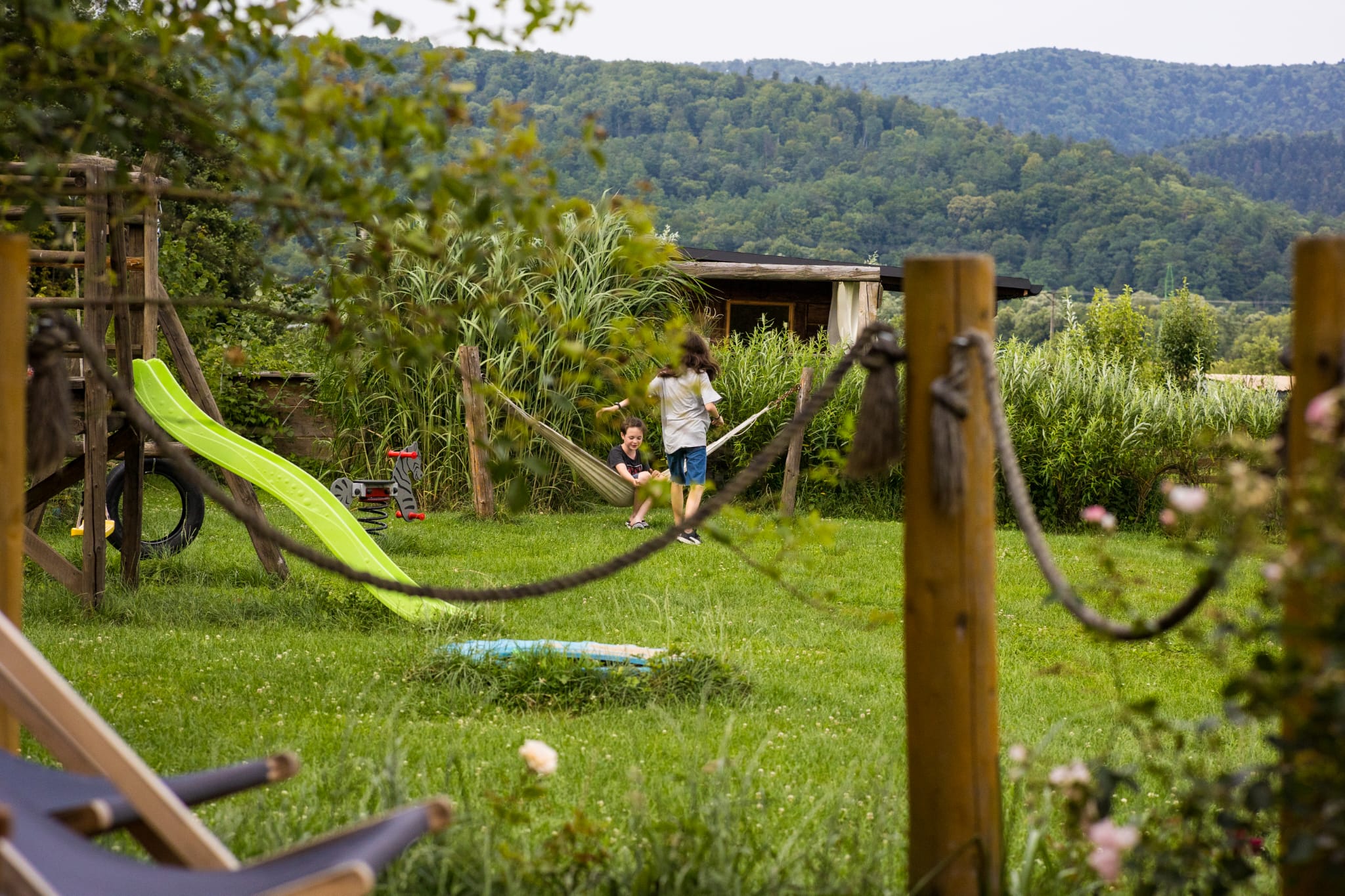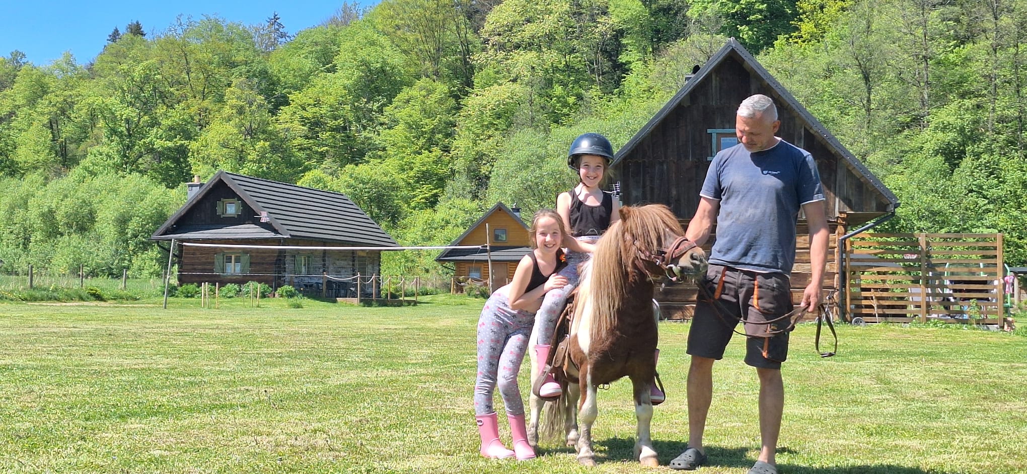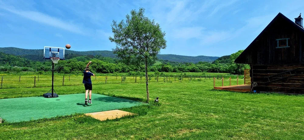 Dla najmłodszych kucyk Maciuś (atrakcja dodatkowo płatna), plac zabaw, trampolina, bezpłatnie rowery, boisko do gry w piłkę nożną/siatkową, kosz do koszykówki, zestaw piłek, badminton.